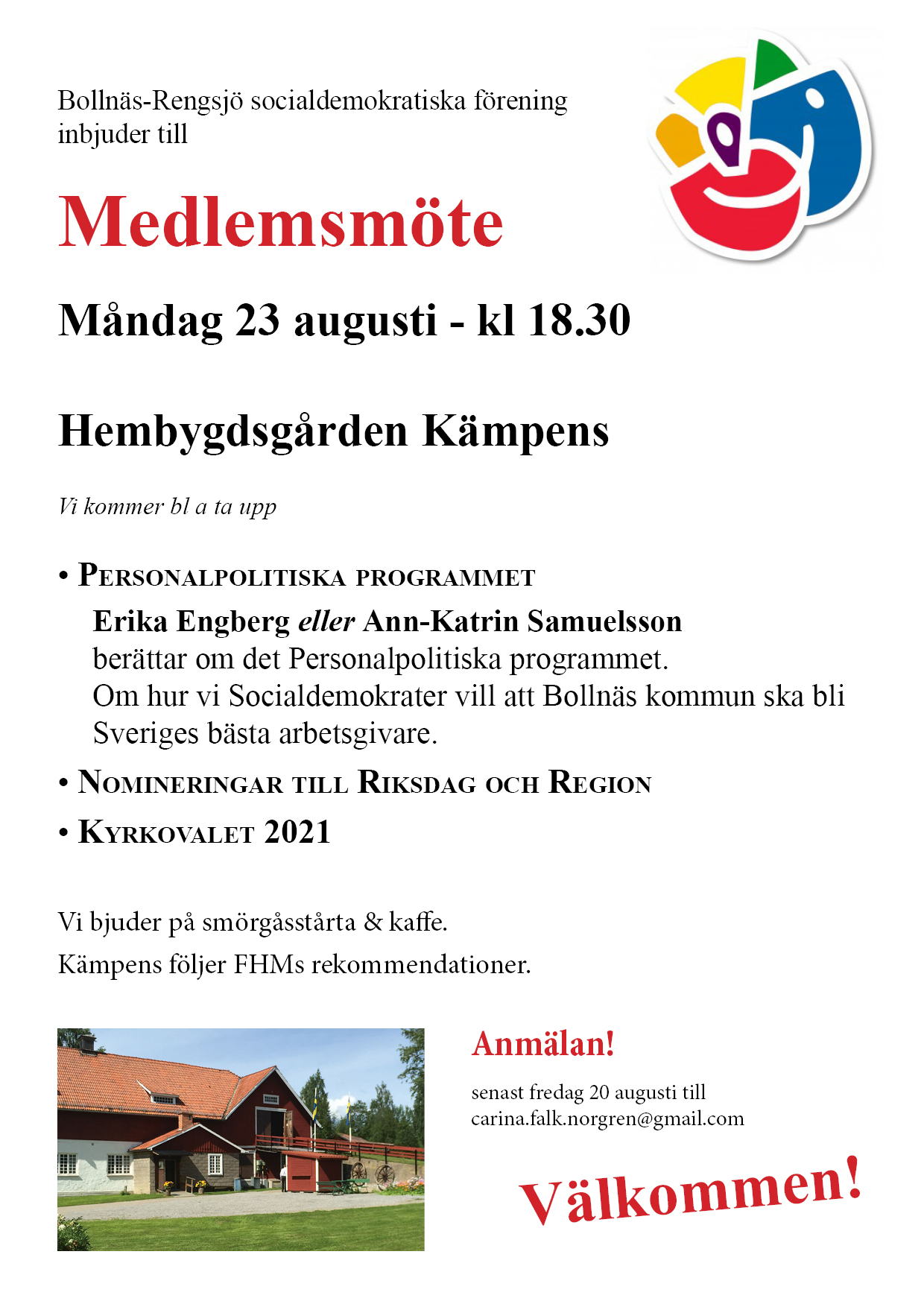 Bollnäs-Rengsjöföreningen har Medlemsmöte 23 augusti