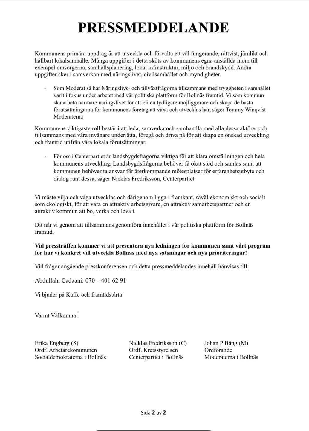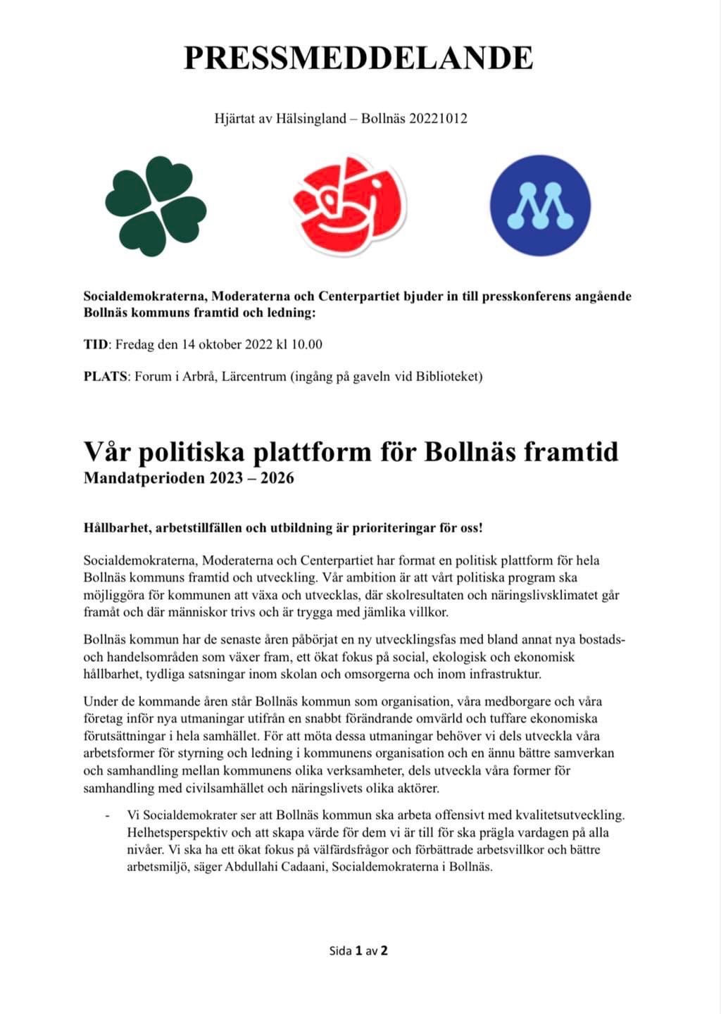 Politisk plattform för Bollnäs Framtid 2023-2026